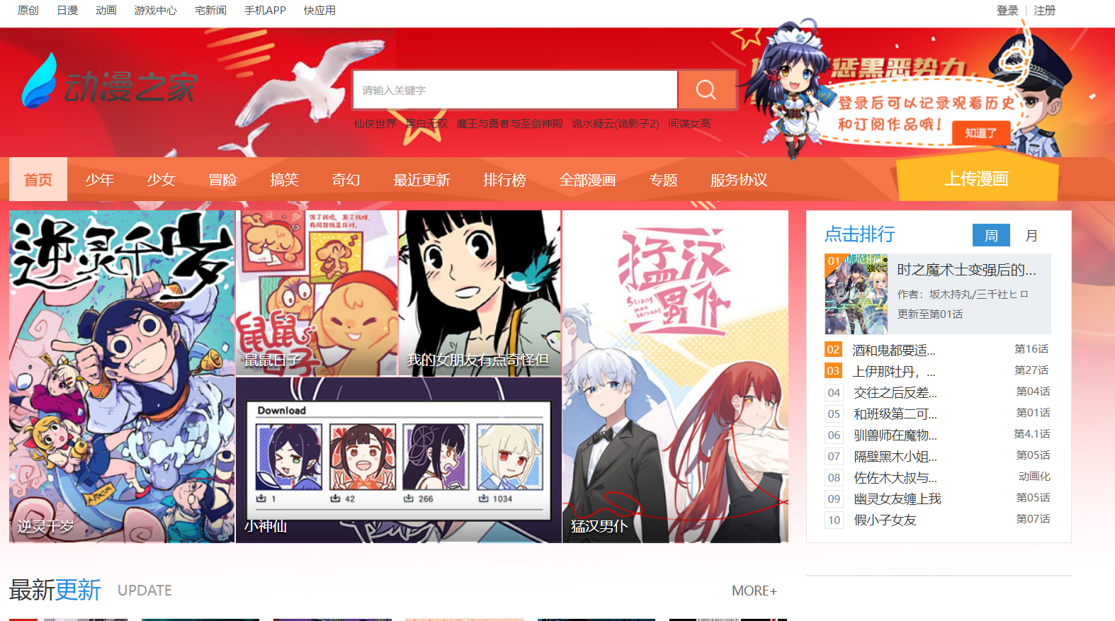 动漫之家是国内最全最专业的在线漫画、原创漫画、最好看的动漫网站,每周更新各种原创漫画、日本动漫,动画片大全、漫画大全、好看的漫画尽在动漫之家漫画网。