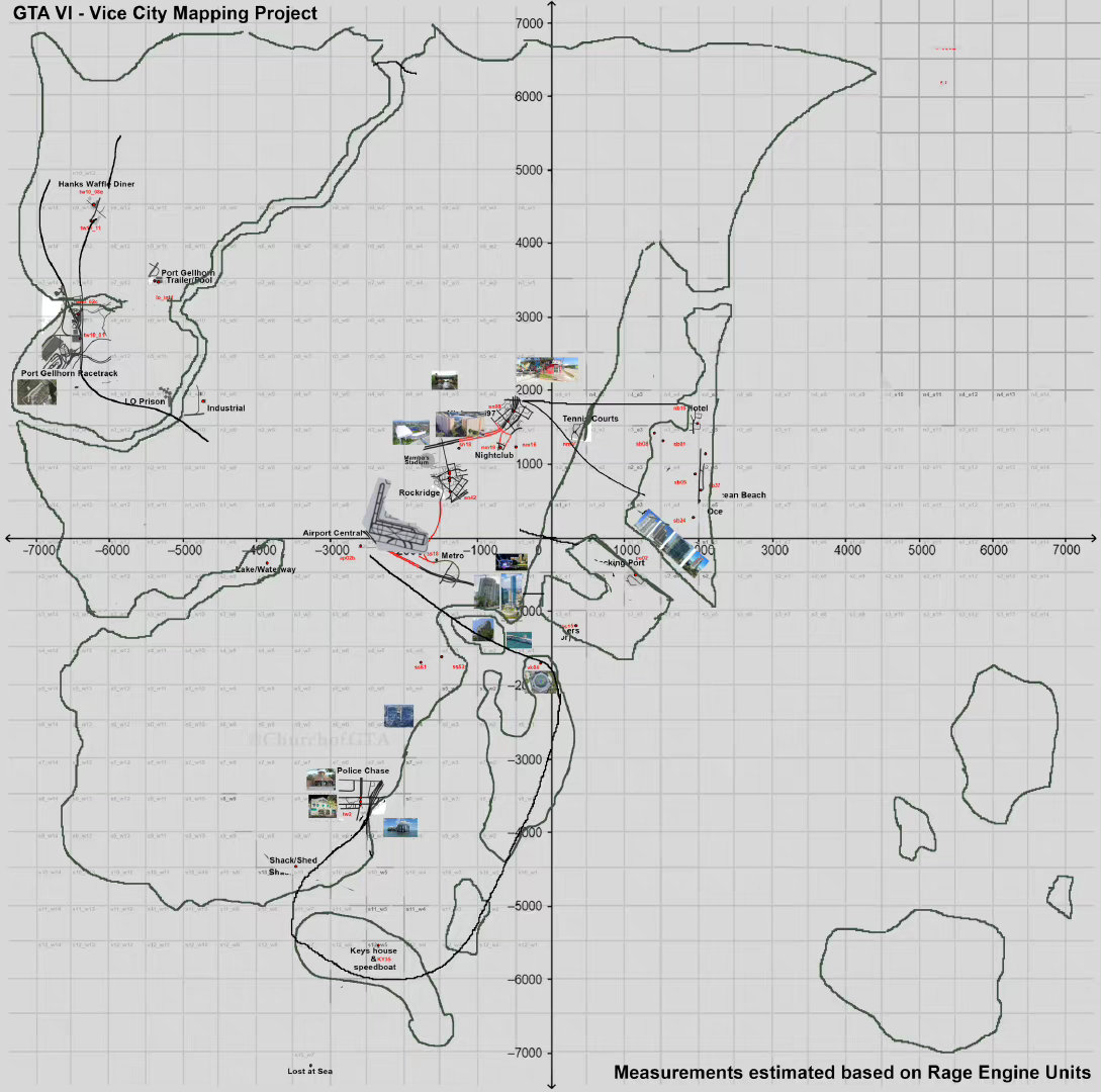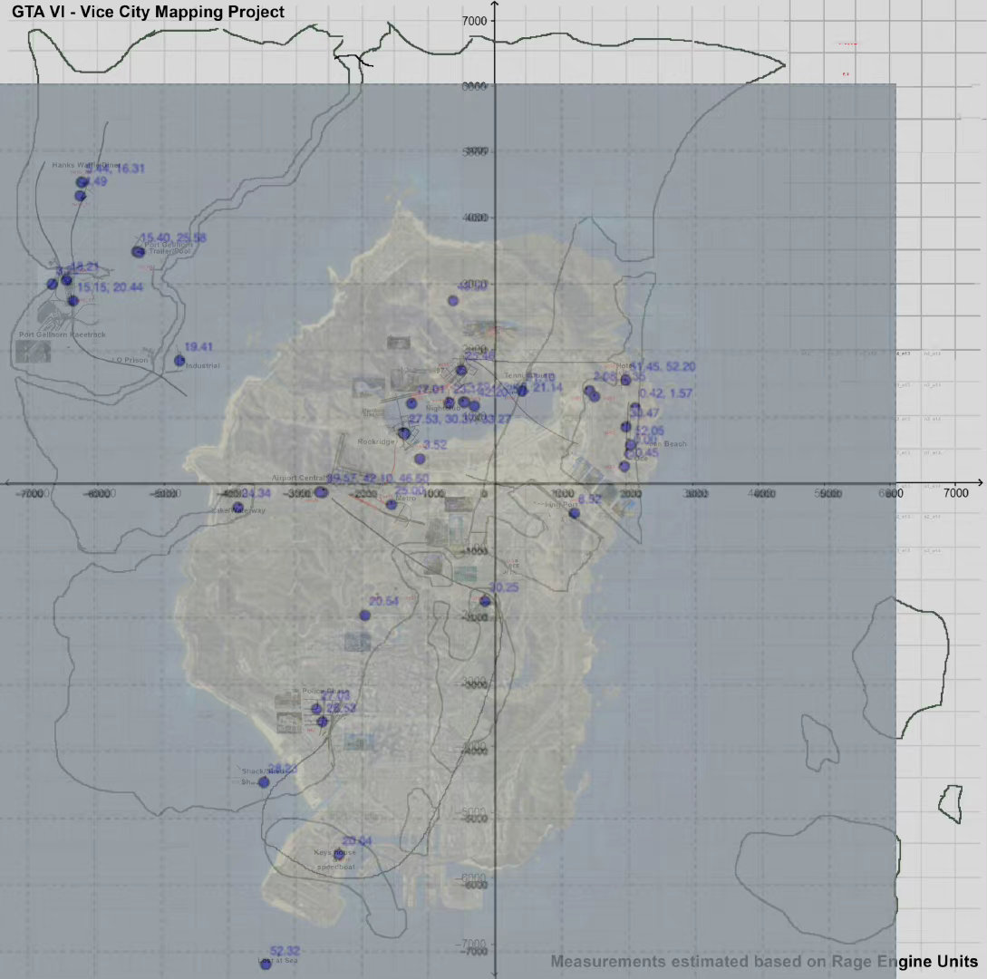 其实早在2011年11月,Rockstar 便发布了当时还未发行的《给他爱5》的首个预告片。围绕着这款游戏铺天盖地的宣传,第二天,GTA论坛的粉丝们便开始仔细浏览这段预告片,并试图描绘出游戏中的虚拟世界。在接下来的两年里,随着Rockstar发布更多的截图、宣传片、预告片以及更多内容,粉丝们每天花费大量时间研究和整理数据。而他们在游戏正式发布前制作的最终地图几乎完全符合《给他爱》的真实游戏世界。十年过去了,粉丝们再次聚集在一起,在下一款《GTA》正式发布之前,尝试还原这个世界。然而,这一次的情况有所不同。