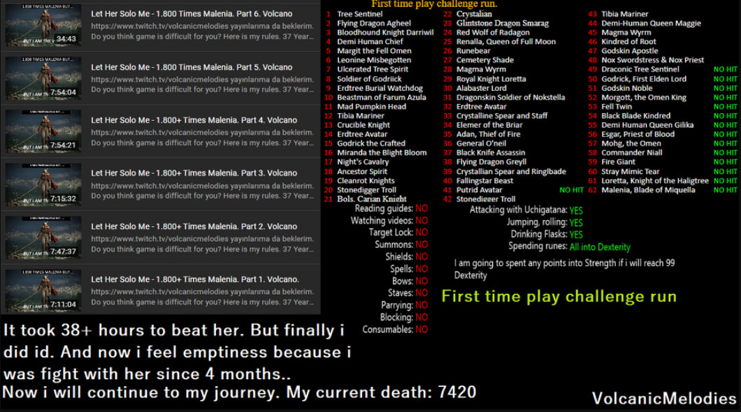 Reddit 上最近的一篇帖子中,一位名为 volcanicmelodies 的玩家声称他花了 1830次才击败女武神,并总共花了超过38个小时的时间,尽管失败超多次,但他没有看任何的攻略。为了证明所言不假,他上传了完整视频,并公布了一张截图。