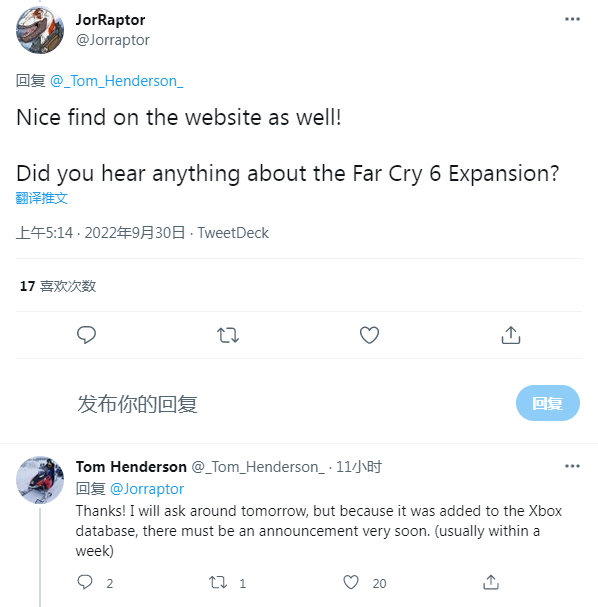国外游戏主播Jorraptor就此事询问了知名爆料人Tom Henderson,Tom舅舅表示明天会打听一下,通常来说一周之内育碧就会官宣。