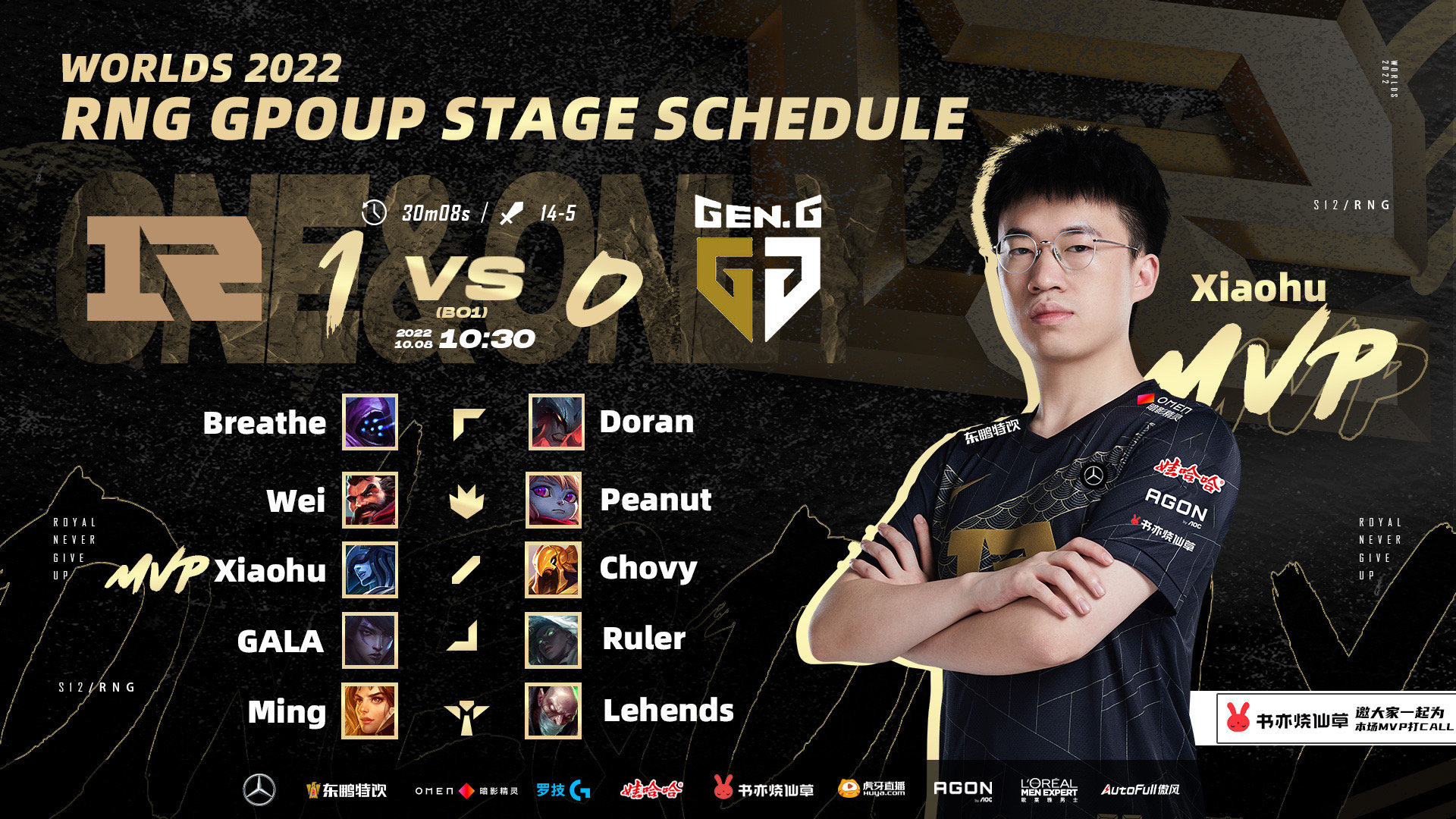 在今日2022全球总决赛小组赛的比赛当中,RNG 1:0 拿下GEN,取得本场比赛的胜利,MVP则为Xiaohu的丽桑卓。