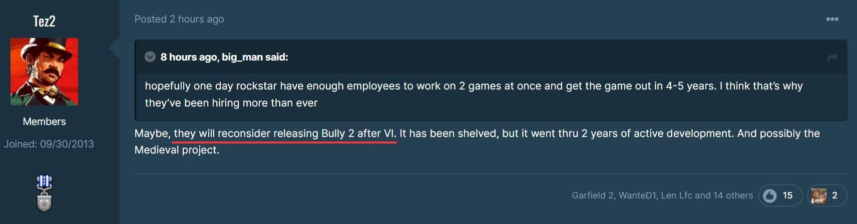 该爆料也和之前 Tom Henderson 的爆料相符,在《给他爱6》后推出《恶霸鲁尼2》也能够有效缓解玩家们对《给他爱》和《荒野大镖客》的疲劳,也有助于填补《荒野大镖客》续作或是《给他爱》续作之间的空白。