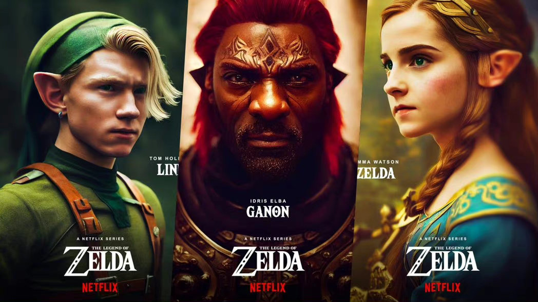 【假消息警告】Netflix《塞尔达传说》真人电影海报公开,汤姆·赫兰德饰演林克、艾玛·沃特森饰演塞尔达、伊德瑞斯·艾尔巴饰演加农。[二哈]