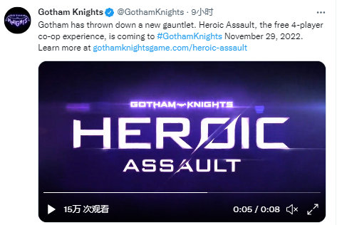 【《哥谭骑士》将推出免费的4人合作游玩模式】《哥谭骑士》官方宣布将在11月29日推出四人合作模式“HEROIC ASSAULT”,玩家可以免费游玩。《哥谭骑士》将于10月21日正式发售,登陆PS5、XSX|S和PC平台。