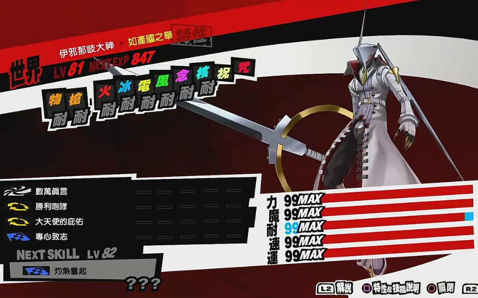 有一个特殊的DLC,若是使用不当很可能会影响游戏体验,它就是“伊邪那岐大神&伊邪那岐大神·贼神 套组”。除祝福和诅咒属性之外,其余属性均有耐性,大幅提高主角Joker的生存能力。同时还有万能属性的群体高伤技能,无视敌人弱点无脑爆炸输出。
