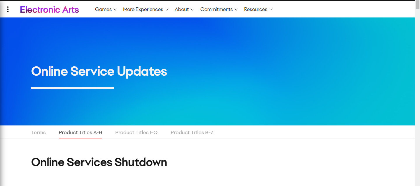 #EA关闭老游戏服务器# EA近日更新了旗下游戏线上服务关闭名单,在10月20日、11月9日、11月30日和2023年1月19日各有一批游戏将关闭线上服务,其中包含了《镜之边缘》、《命令与征服:红色警戒3》等作品。