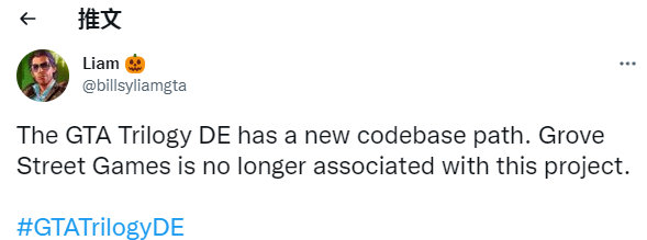 根据社区成员billsyliam给他爱 挖掘的数据,《给他爱:三部曲 终极版》的代码库发生变化,意味着开发这三款游戏的Grove Street Games将不再负责后续更新优化,而是将项目转由R星内部团队负责。