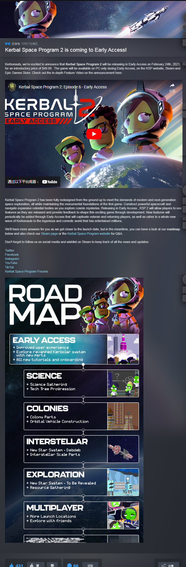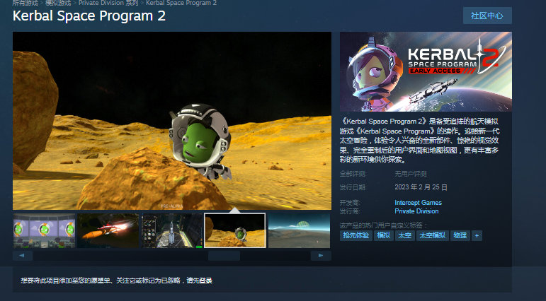 【《坎巴拉太空计划2》公布抢先体验日期!】跳票多次的《坎巴拉太空计划2》终于在昨天公布了抢先体验版的发售日期,游戏将于2023年2月25日在PC平台推出“抢先体验”版本!美区售价49.99美元。