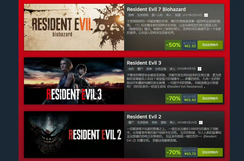 普空为了庆祝万圣节的到来,也特设了专题页面,《生化危机》系列游戏最高可享受-80%的折扣。