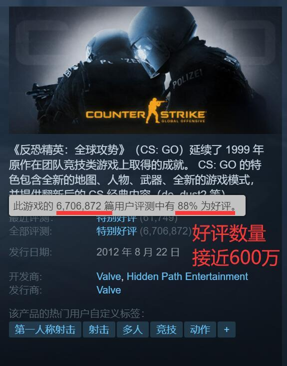 · 总好评数量超过590万条,是整个Steam上唯一一款好评数超过200万的游戏