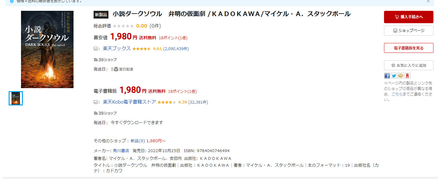 【黑魂IP小说《黑暗之魂 辨明的假面剧》今日发售】角川今日宣布From Software动作RPG 《黑暗之魂》的改编小说《黑暗之魂 辨明的假面剧(小説 ダークソウル 弁明の仮面劇》已于今日发售,售价1980日元(不含税),小说由《星球大战I:绝地与侠盗中队》作者迈克尔·A·斯塔克波尔执笔。 此外角川还表示《黑暗之魂》游戏系列累计销量已达2700万份。#黑暗之魂系列销量突破2700万#
