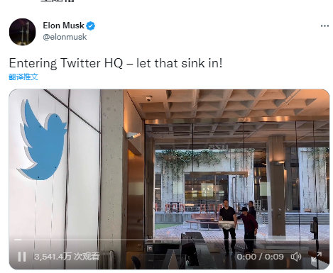 此外,马斯克的推特账号简介也改为“Chief Twit”,并分享了他来推特总部大楼的视频。#马斯克开除推特CEO和CFO马斯克完成推特私有化交易#