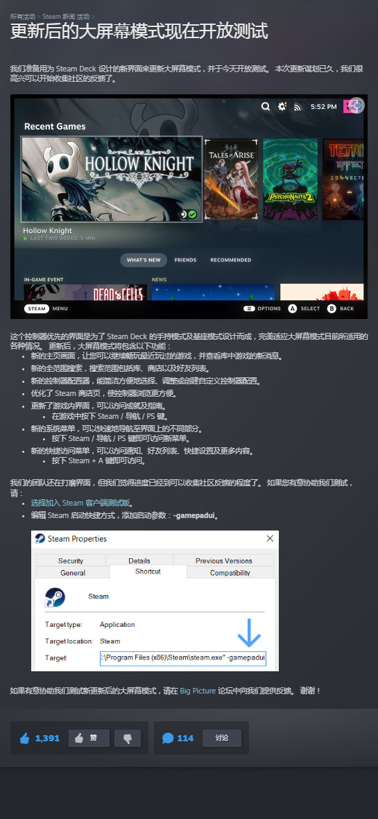 【#Steam将采用新版大屏幕模式# UI采用Steam Deck样式】Steam官方今日宣布准备用为 Steam Deck 设计的新界面来更新大屏幕模式,并于今天开放测试。