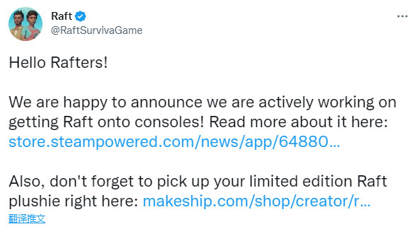 【生存冒险游戏《Raft》将推出主机版本】由 Redbeet Interactive 开发的生存冒险游戏《Raft》宣布继PC版后,接下来也会推出主机版本,不过主机版本的发售日和具体登陆哪些平台都还未知。开发商 Redbeet Interactive 表示为了尽可能让玩家可以在更多的平台上,体验到与PC版同样的游戏体验与乐趣,因此目前正在积极准备中。不过由于开发还需要一段时间,因此有关主机版更进一步的信息情报,还需等后续才能够发布。
