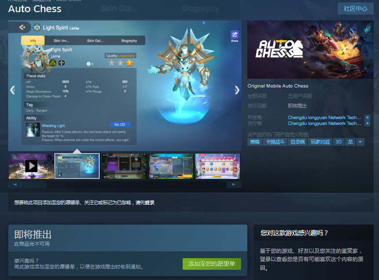 【#多多自走棋上线Steam#】《多多自走棋》现已开设Steam商店页面,页面仅Steam国区可见,游戏目前发售日未定,支持简体中文。