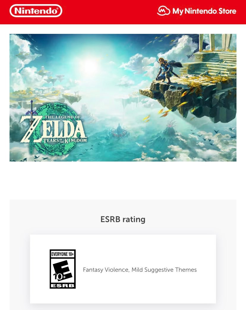 《#塞尔达传说王国之泪#》目前已经获得美国ESRB评级,同前作《塞尔达传说:旷野之息》一致,维持在“E 10+”。游戏将于2023年5月12日正式发售,登陆Switch平台,支持任亏券兑换。