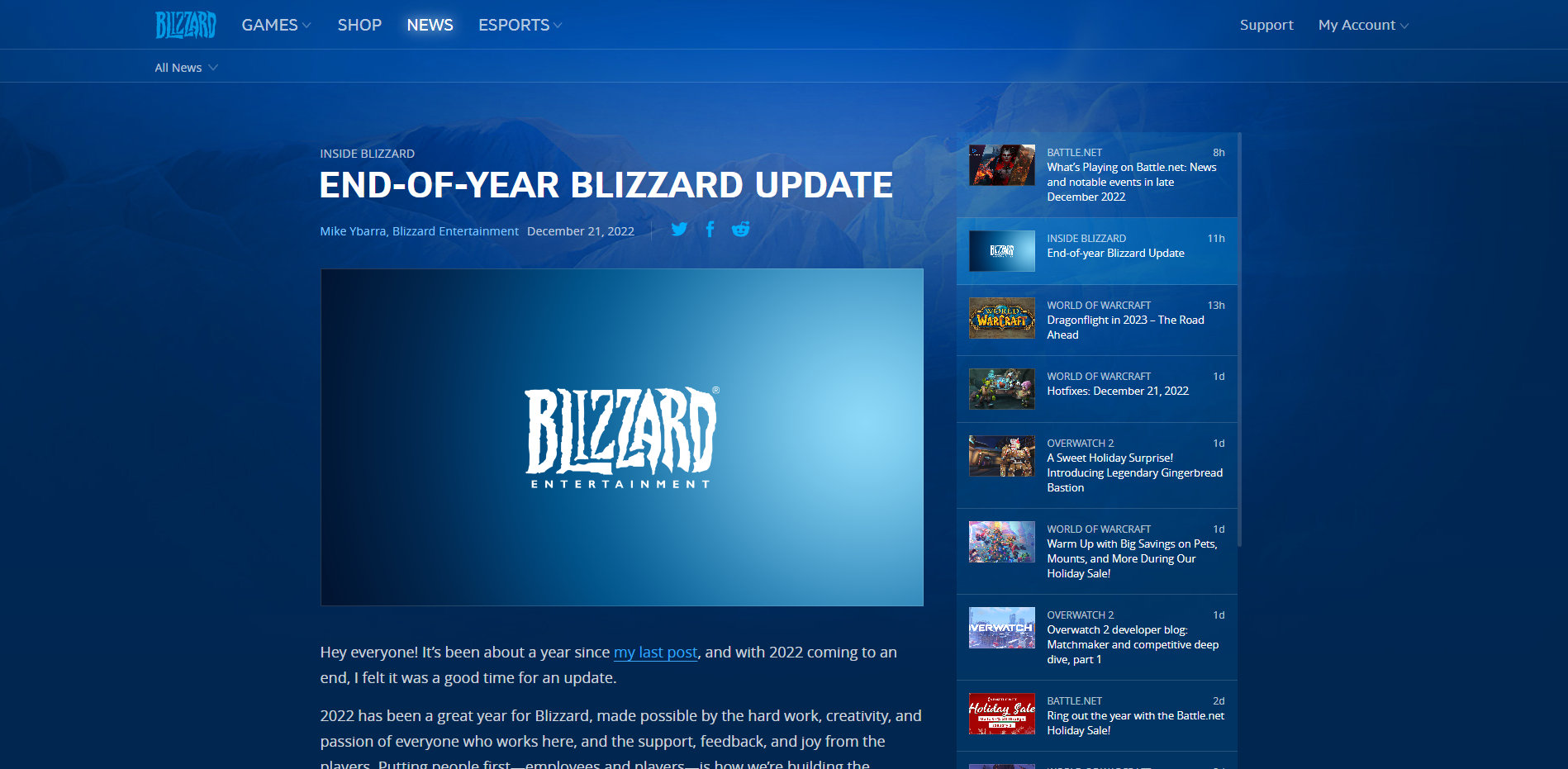 【#暴雪嘉年华预计2023年回归#】暴雪总裁 Mike Ybarra 今日在官方博客发布了年末回顾文章,文中表示已经阔别三年的大型玩家嘉年华活动“暴雪嘉年华”确定将于 2023 年回归。