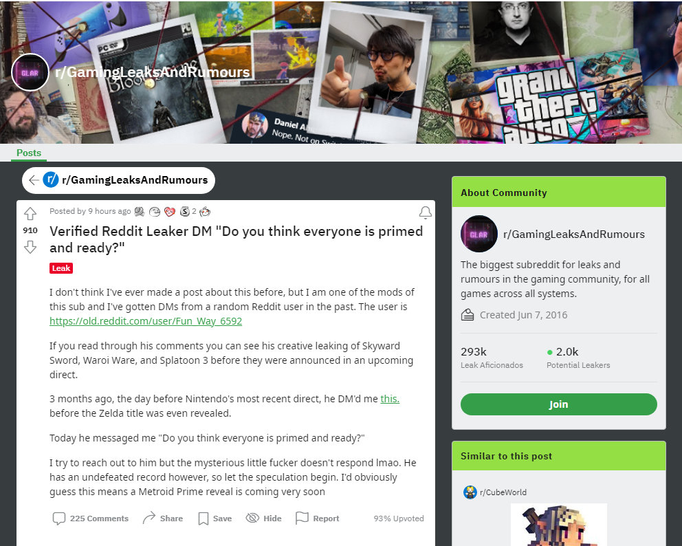 “舅舅党”Fun_Way_6592 此前准确爆料了《塞尔达传说:王国之泪》的完整标题和揭晓日期。现在,他再次向在Reddit的板块“GamingLeaksAndRumours”上爆料。这次他发布的信息是“你认为每个人都准备好了吗?” 并暗示即将发布与“Prime”相关的公告。