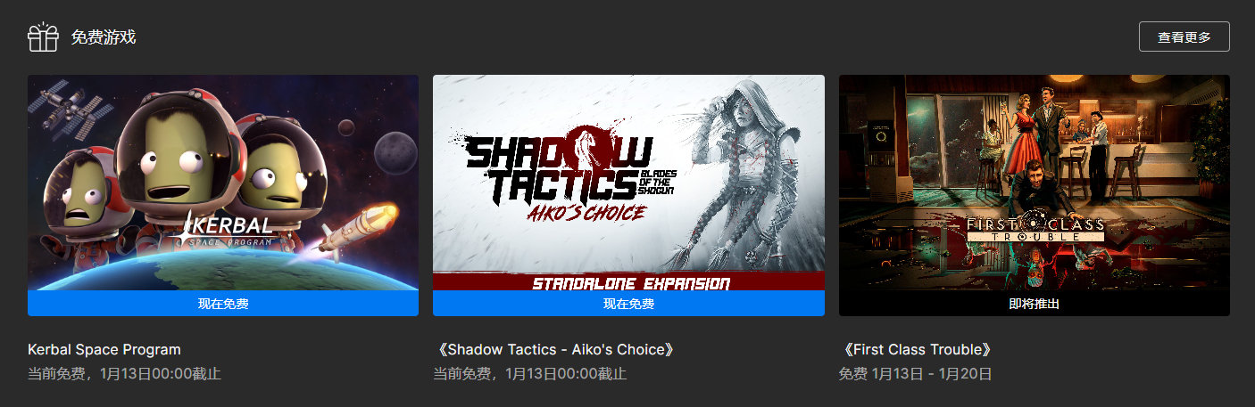 【】Epic游戏商城新一周的限时免费游戏现已解锁可领取,在1月13日00:00之前,可免费领取沙盒风格航空航天模拟游戏《坎巴拉太空计划》和潜行战术游戏《影子战术将军之刃:爱子的选择》。