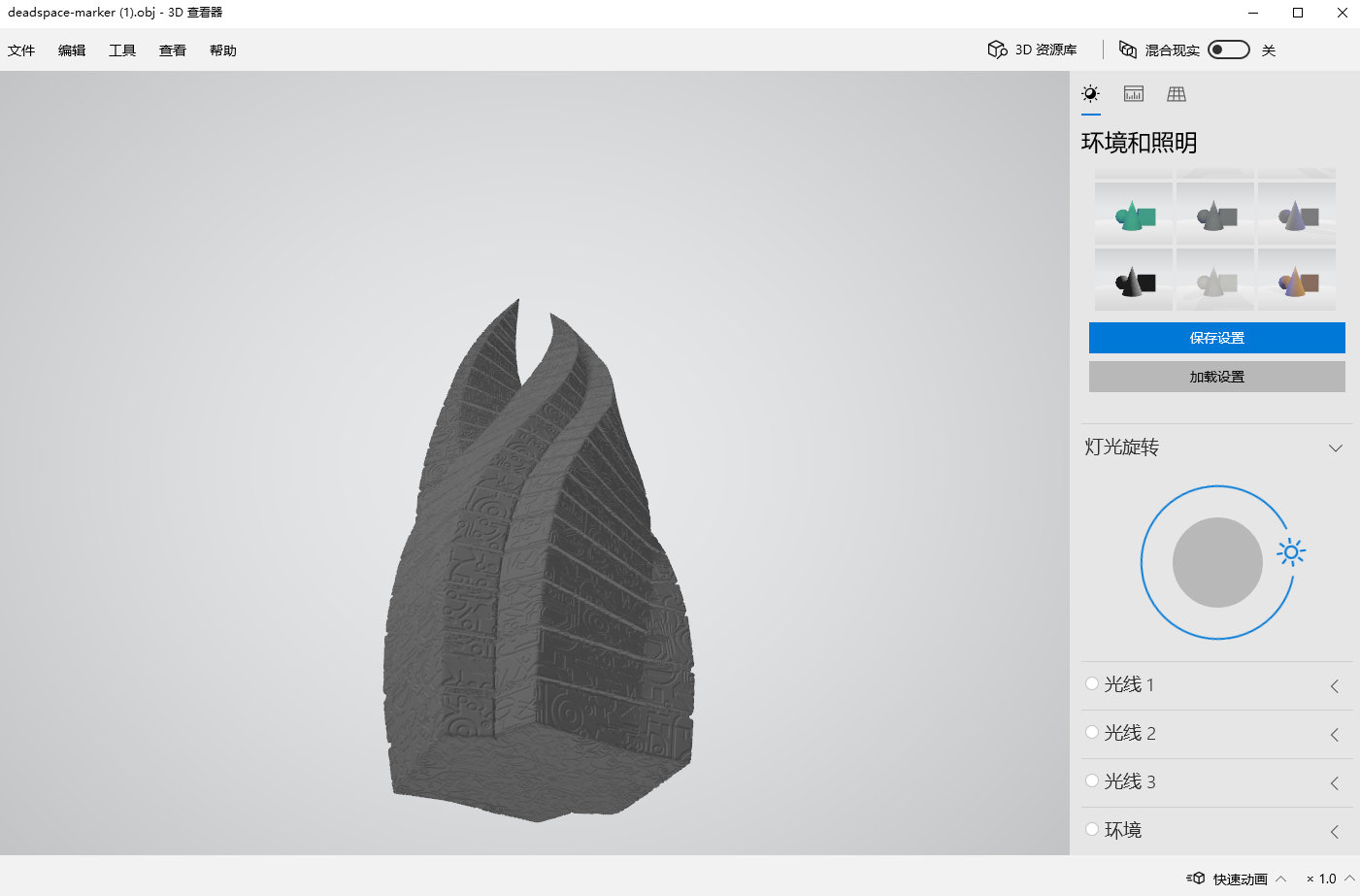 当然即便你没有3D打印机,该文件下载后,Win10及以上的电脑用户,也可用系统自带的3D查看器预览模型,360度无死角观察“神印”,并可调整照明和颜色等。感兴趣的玩家可以一试。