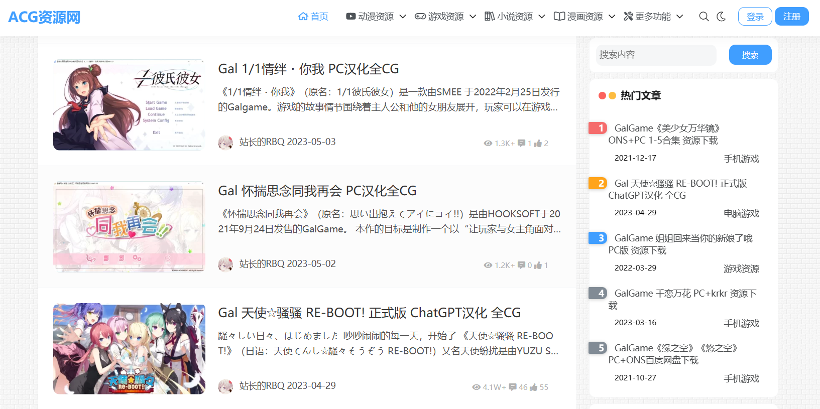 备注搜索:ACG资源网,动漫资源,轻小说资源,漫画资源,游戏资源,gal下载