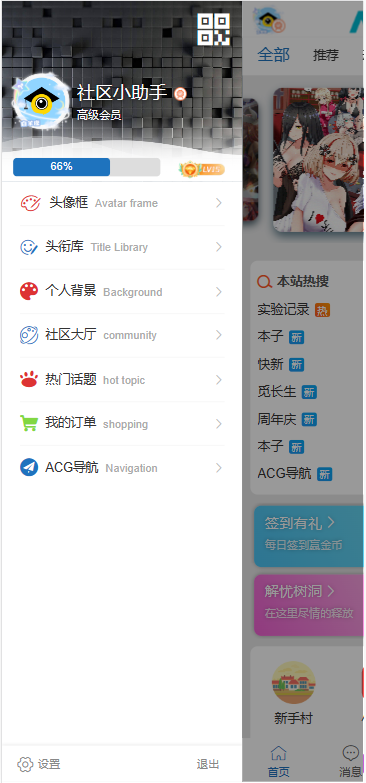 1、登录社区之后点下自己的头像,你会发现有个快捷侧边栏,自行去体验吧