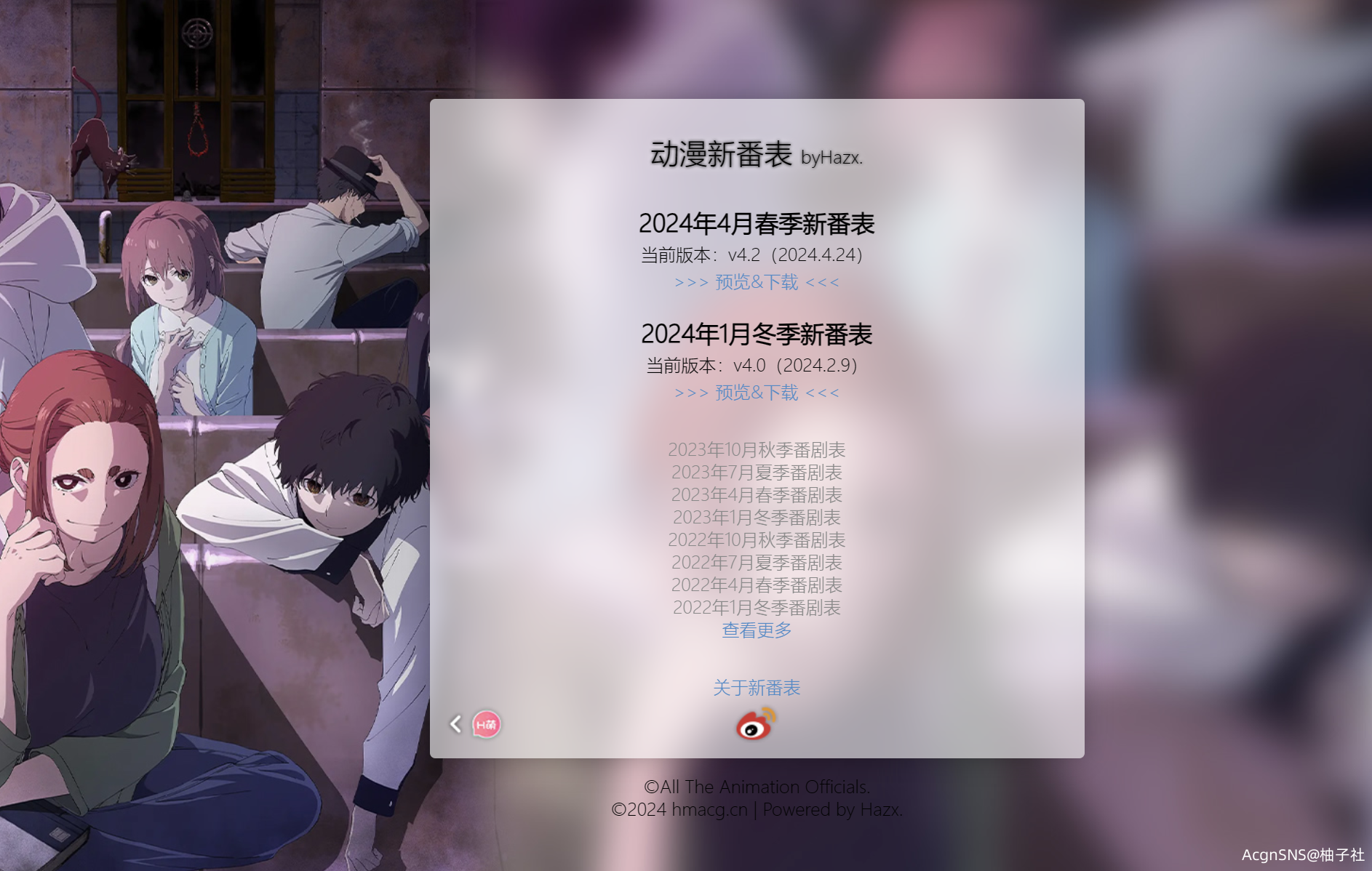 动漫新番表 byHazx 地址:https://hmacg.cn/bangumi/