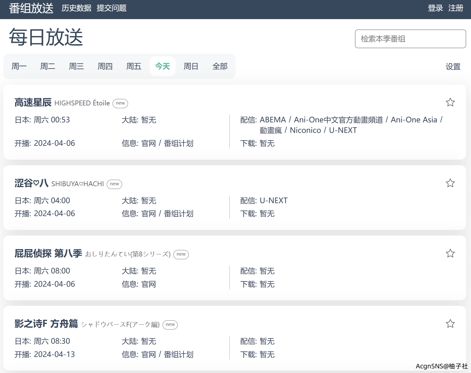 新番信息聚合列表,可以说是内容最详细的一份了。不止包含了播放时间平台等信息,还有动画内容的详细介绍。