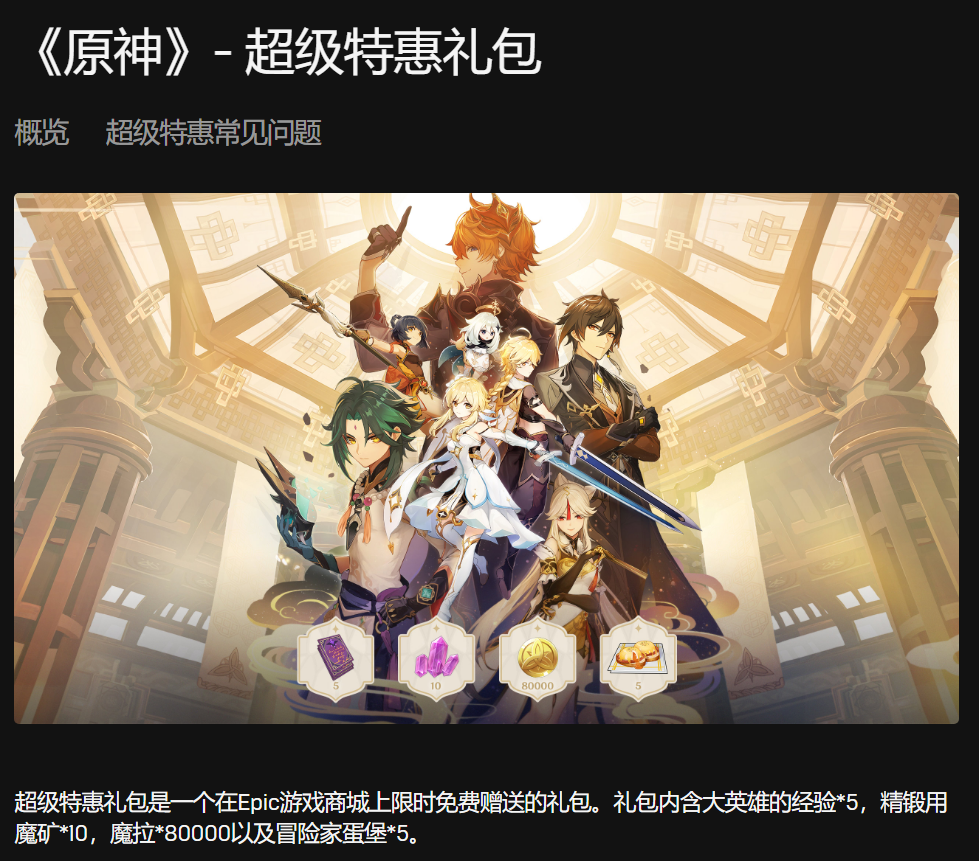 为庆祝 Epic 大特卖,新老玩家均可输入GS65QR445HQV兑换免费《原神》游戏内容。
